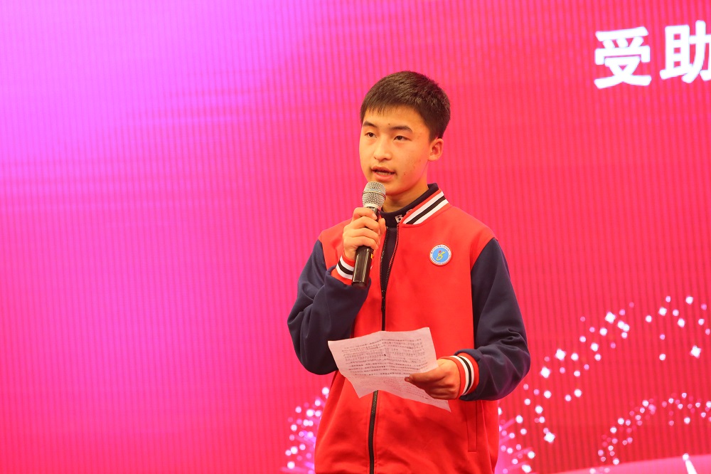 受助贫困学子代表朱兴铖发言