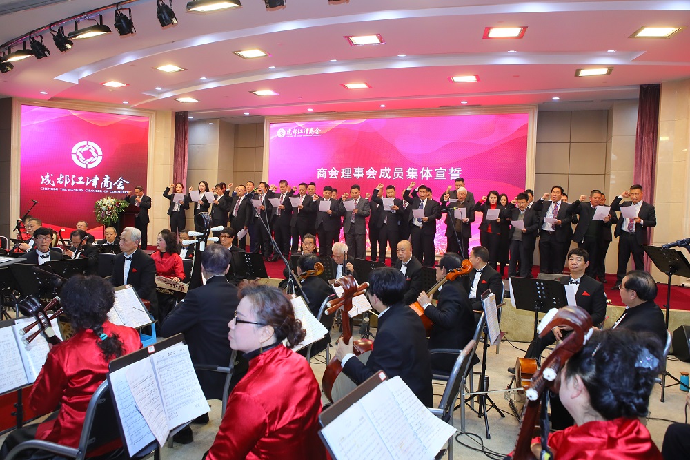 庆典大会在器乐大合奏中拉开帷幕,记录成都江津商会十年发展历程的专题片《岁月如歌》,全面总结商会工作,党组织建立近十年,如今已拥有党委下辖总支部1个、党支部17个、党员201人,党委坚持习近平新时代中国特色社会主义思想,坚持党对商会工作的政治领导,充分发挥商会党委在商会工作中的政治核心作用,坚持对会员和商会班子成员的政治教育、政治方向引领。充分发挥党组织和党员在商会和会员企业的战斗堡垒作用和先锋模范作用,引领会员理顺两清政商关系诚信守法开展经营活动,促进了商会工作健康有序的发展;民建支部坚决拥护中国共产党的领导,在党委领导下积极为地方经济建言献策,组织民建会员参与捐资助学等公益活动,得到党和政府的高度认可;十年来为294家会员企业维权,挽回经济损失近5亿元;为5.12汶川地震捐资捐物1235万元,4.20芦山地震130万元,江津特大洪灾80万元,为川、蓉、津等地教育捐资780万元;十年来举办各种培训68期,受训会员达6400人次。艺术团深入会员企业,深入社区、兄弟商会演出100余场,纪实文学“一个中国公民在金三角的禁毒遭遇”、“当今奇人周兴和”“冲出百慕大”在商会网站连载播出在社会各界引起反响。众筹建起的会馆,让江津人有了自己的家。